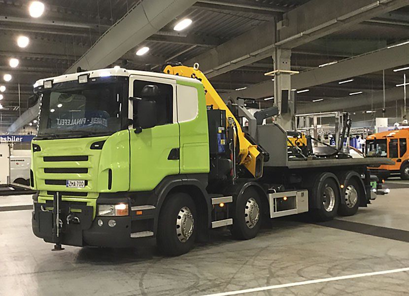 Scania G400 8x2 uudella Copma 650.6 J 4 nosturilla ja Unilift TL 20 5800 koukkulaitteella.